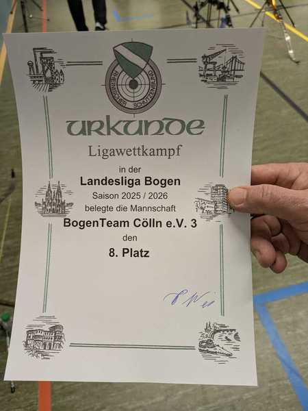 Die zweite Mannschaft des BogenTeam Cölln zeigte in der Landesoberliga Bogenschießen großen Mut und starken Teamgeist. Am Ende belegte sie den 5. Platz, doch der wahre Sieg lag im unermüdlichen Einsatz jedes Einzelnen. Während des Turniers musste eine sehr gut Schützin, aufgrund eines Unfalls, leider aus dem Team ausscheiden; dennoch konnte das Team nicht nur weitermachen, sondern weiterkämpfen – mit Entschlossenheit, Konzentration und gegenseitiger Unterstützung.