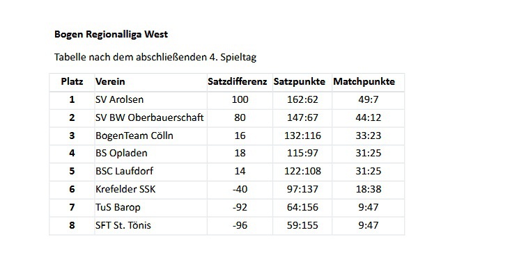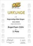 Die erste Mannschaft des BogenTeam Cölln ist nach dem Aufstieg in die Regionalliga Bogenschießen in der letzten Saison zum ersten Mal dabei und erzielt einen hervorragenden dritten Platz gegen hochklassige Mannschaften. Über alle vier Wettkampftage haben sich drei Schützen durch die abenteuerliche Saison getragen und eindrucksvoll gezeigt, was Teamgeist, Präzision und Beständigkeit bedeuten.